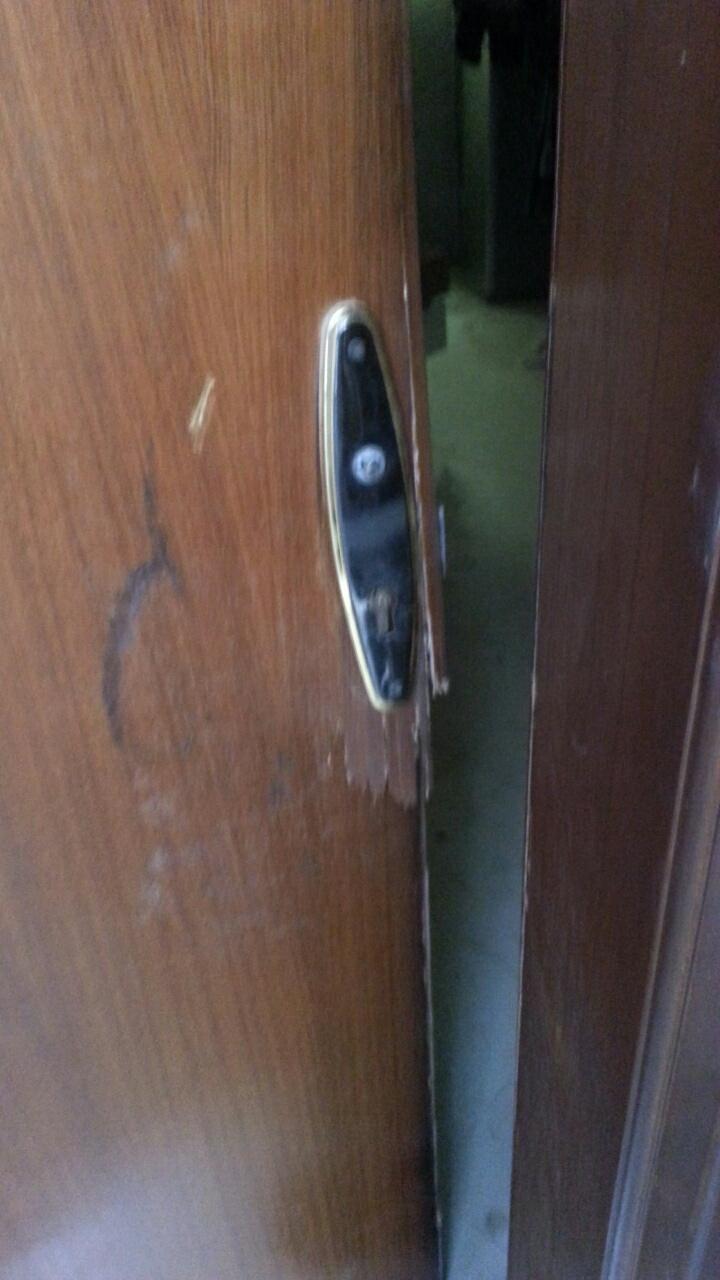 @SAIDYOUSIF: #bahrain another door broken yesterday in bani jamra by police باب اخر تم تكسيرة من قبل المدنيين الملثمين http://t.co/4Yb2XF1rPt